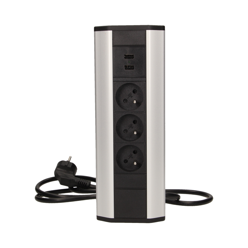 Rohová elektrická zásuvka 3x230V + 2xUSB stříbrná/černá s kabelem 1,5mskladem759,00 Kč/ ks627,27 Kč bez DPH
