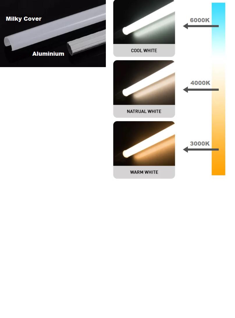 Hlíníkové tělo trubice = vyníkající chlazení, polykarbonátový mléčný kryt, kvalitní FLICKER FREE napájecí zdroj, jednostranné napájení, LED startér (zkratovač) přibalen